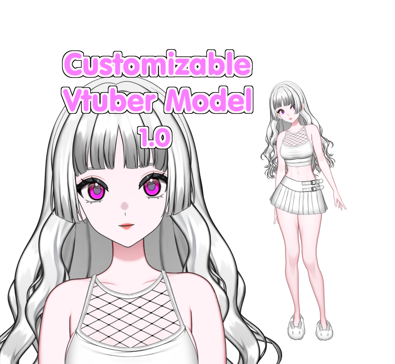 This is a Customizable Vtuber model available in 3 different canvas sizes, with and without Vbridger tracking. So there will be 6 models in the folder that you download. I recommend starting with the medium size, it´s still big in size. Ready to be used in Vtube studio.You will need : Vtube studio to run the model, to run the Vbridger tracking you will need Vbridger + Vtube Studio.Tracking devices: iphone, android and webcamTutorials are everywhere if you want to know more, do some research before you buy! If you have any questions please DM or email me.Place the unzipped folders in "Live2DModels"To access the sliders, click the wheel icon "settings" then click on the left top corners 4th icon "hotkey settings and expressions" >expression editor> create new expression, name it something on the top and save after you´re done, then click "create new hotkeys for all unused expressions" and you will see a new "window" of your expression on the right side. There you can select and record what key you want to use for the expression to be toggled on and you´re done!If you want for example a piece of hair to be a different color you recolor it by clicking the third top icon "model settings" > "customize model" > "customize multiply/screen color for Artmeshes" and find the layer you want to recolor, the colors will reset to black and white so that you have a good base to start with! Showcase and twitch VOD showcase videos :https://www.youtube.com/watch?v=SdyxovtkhxYhttps://www.youtube.com/watch?v=RcM4eshrkE4FAQ:Can I edit the .PNG texture atlas?- Yes you can! Can I split dye the hair?- No, I´m sorry! The .PNG texture atlas only contains the Models LEFT side of the hair, so if you edit the hair parts in the atlas it will show up on the other side too. Same with all eye, animal ears, horns, earrings textures. You can edit them in Vtube studios own layer settings though! BUT most of the furthest back hair layer is a whole art layer so you can´t split dye that part in VTS.Is there a flat chest option?- No! but the sweater top is flat. Next model I work on will have a flat chest.Will I be able to commission you for custom parts? - For now I don´t have time, Sorry!T.O.S You are not allowed by law to redistribute the files/upload/resell them in any way.Raffles and giveaways will be held by Misu Murasaki only.I (Misu Murasaki) still retain the intellectual property rights to all files.You are not allowed to use the model in a defamatory, hateful or inappropriate way.
