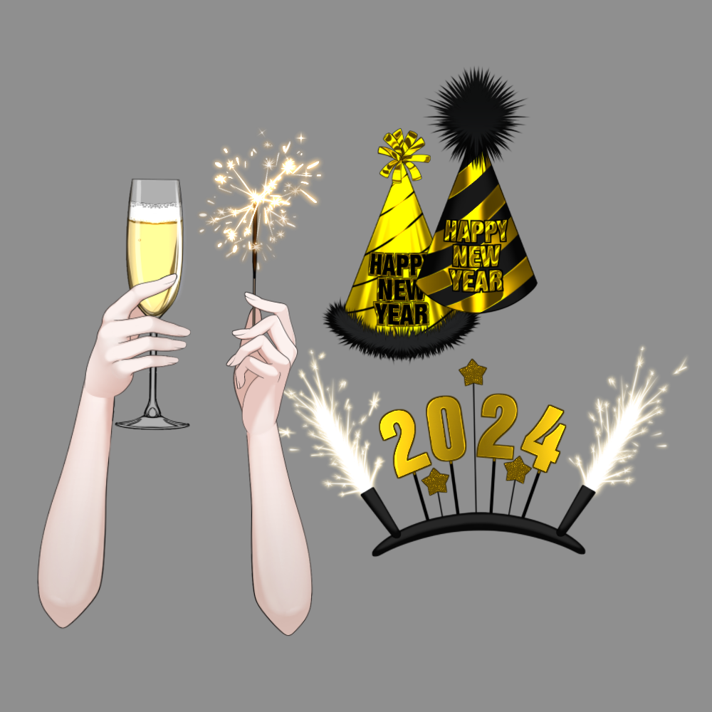 Here are some New year Assets for 2024 ! These assets are for Vtube studio ONLY, there are no .Gif or .PNG files only Live2D files.Here´s a video of them all and a little short tutorial on how to recolor and make transparent art layers :https://www.youtube.com/watch?v=xAZKP0S8RGA!IMPORTANT!Place the unzipped files in Vtube studios "Items" folder. ---------------------------------------------------------------If you want to RECOLOR or make art layers TRANSPARENT, and how to load them in as an asset when you´re done, (These files are placed in the "live2d models" folder in Vtube studio, NOT "items") you cannot recolor an asset if you place them under " items". Please take a look at this example short tutorial: https://www.youtube.com/watch?v=i_Eruvgh-48&t=1s!IMPORTANT !1) Place the files in vtube studios "live2d model" file, if you want to recolor the assets, recolor them as you would with a normal vtuber model.2) To save it as an asset click on the green star icon on the left side in Vtube studio and then click on " load current model as Live2D item. By doing this it will create a file in the folder "items" that you can use as an asset.Some of the assets might need their animation applied,1) Click on the pink wheel on the left side of Vtube studio.2) Click on the third top icon that looks like an avatar with a wheel above it´s head.3) Click on Idle animation and select whatever pops up in the window and you´re done ! ( Make sure to apply the idle animation step BEFORE you make it into an asset)
