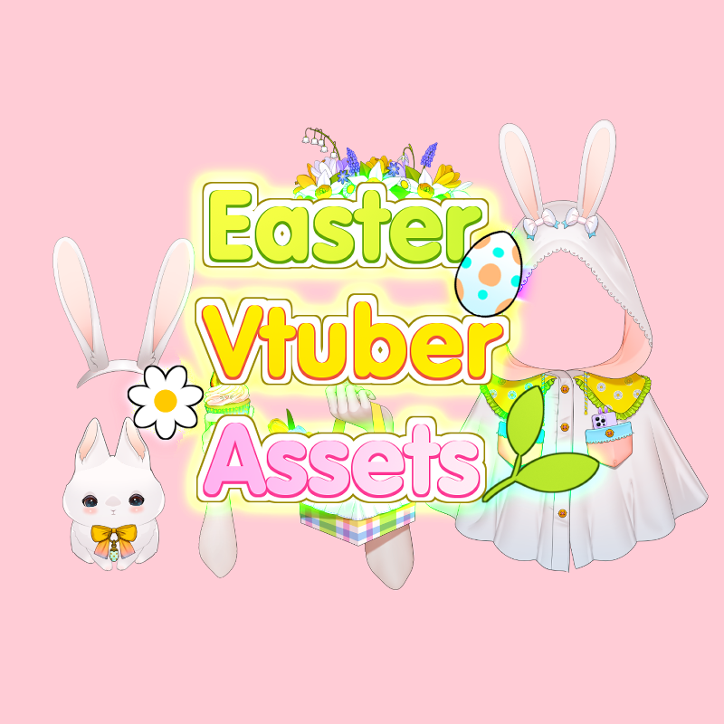 6 Easter Vtuber assets ! The whole pack is discounted and is much cheaper!These assets are .moc3 files and are used in Vtube studio.If you click on the assets individually you will see more information about them.Click on the link to watch a video of them:https://www.youtube.com/watch?v=aKy49644rfQ!IMPORTANT!Place the unzipped files in Vtube studios "Items" folder. ---------------------------------------------------------------How to recolor assets:1) Place the files in vtube studios "live2d model" folder.2) To save it as an asset click on the green star icon on the left side in Vtube studio and then click on " load current model as Live2D item. By doing this it will create a file in the folder "items" that you can use as an asset. You will also get an option to recolor the asset.