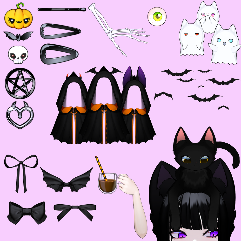 21 different Halloween Assets !You can purchase these as a whole pack bundle or purchase them separately.The video shows in the TOP right corner which files the current asset shown are supported with. Simple setup ♥Happy trick or Treating !!IMPORTANT ! Place the unzipped files in Vtube studios "live2d model" folder. Refresh vtube studio and they will appear.Click on the link down below to see a video of them all!https://www.youtube.com/watch?v=JBY8y-CX5HYTwitter:https://twitter.com/Misu_PurpleNeko